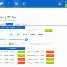 - Account billing details, recharge, subscriptions (packages) management
