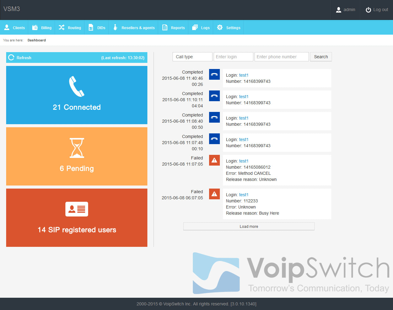 VSM3 combines the functionality of the current VSM application with that of VSC admin portal – allowing you to fully configure VoipSwitch and monitor your live-traffic (displays Active, Completed and Failed calls)