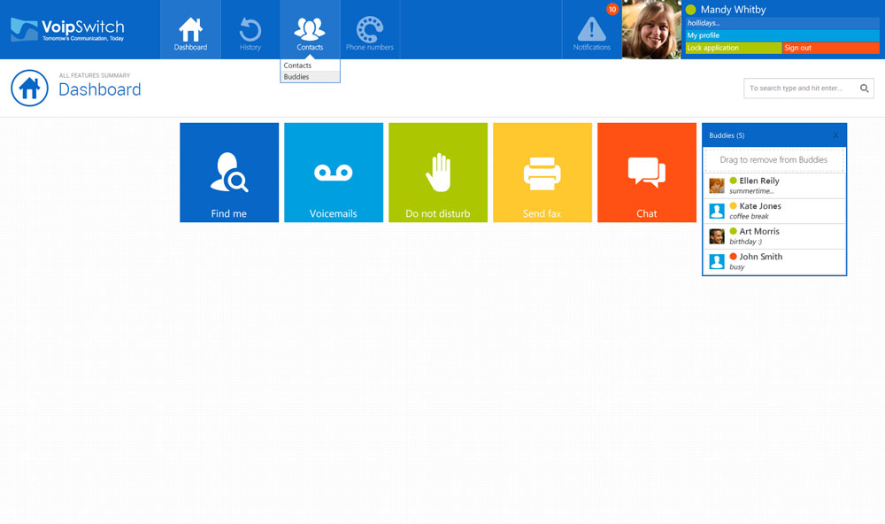 The VoipSwitch User Portal (VUP) is an Html5 based lightweight customer self-care web interface. It works on PC, tablets and smartphones.Its purpose is to provide a service center where customers can manage their account settings, review billing information and add new services. VUP also allows for direct use of communication services such as Instant Messaging and voice/video calling.